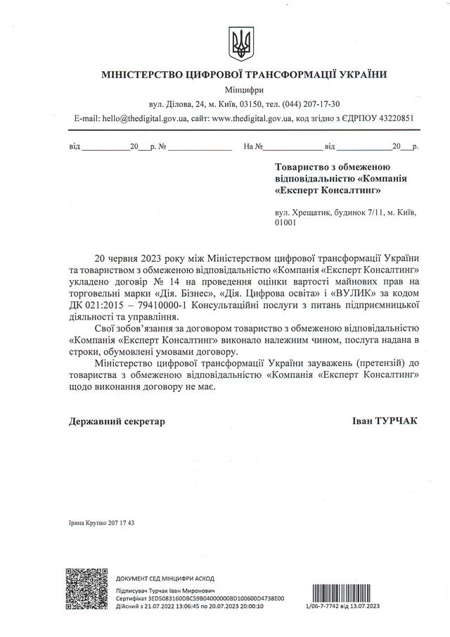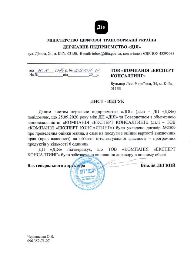 Вибіркові відгуки клієнтів, які раніше замовляли послуги оцінки майнових прав на об'єкти інтелектуальної власності у нашій Компанії: