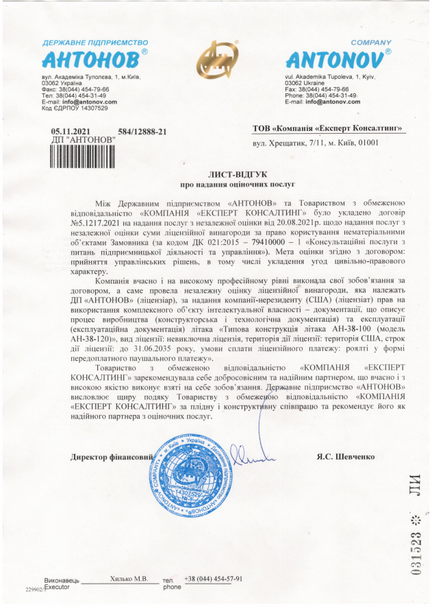 Вибіркові відгуки клієнтів, які раніше замовляли послуги оцінки нематеріальних активів у нашій Компанії: